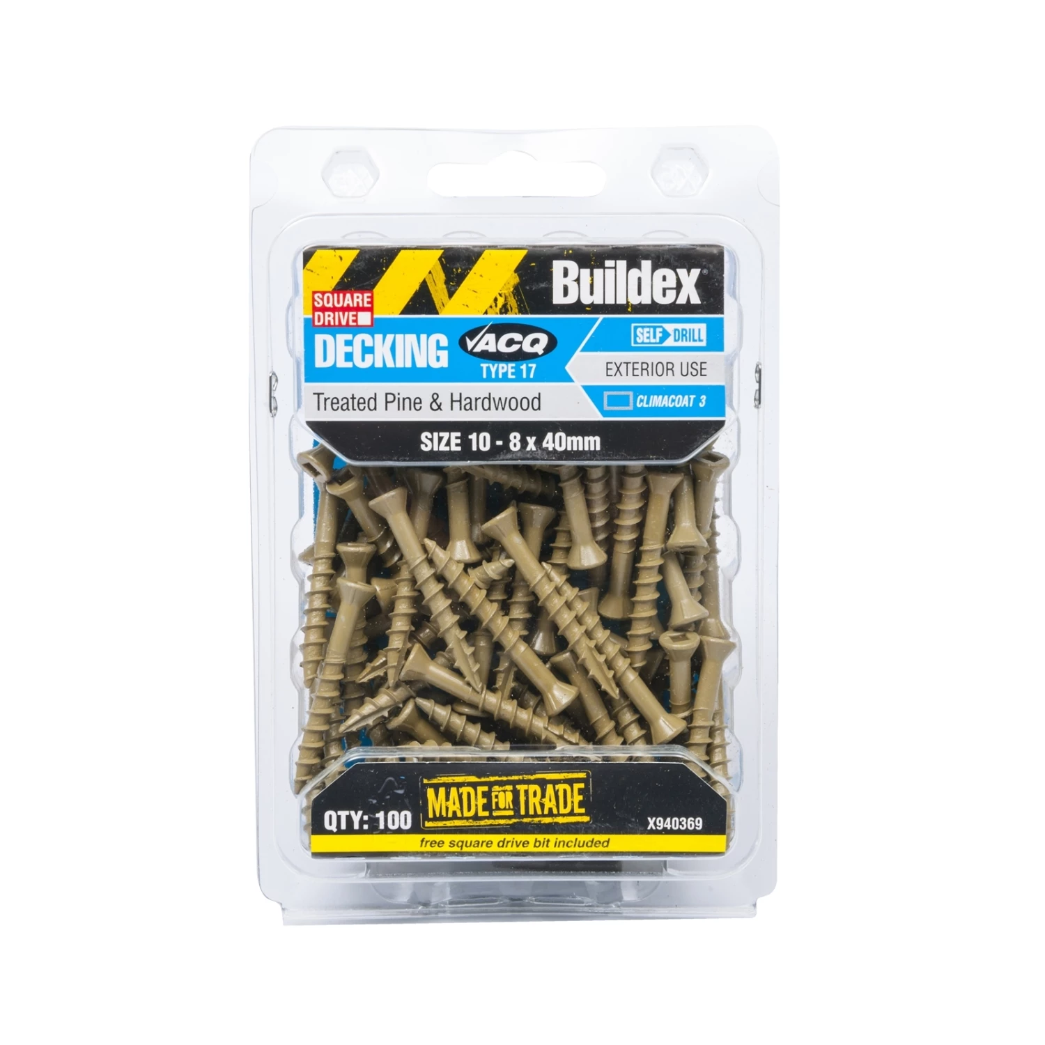 These self drill Buildex Type 17 Decking Screws are of a superior trade quality, designed for use in treated pine and hardwood.