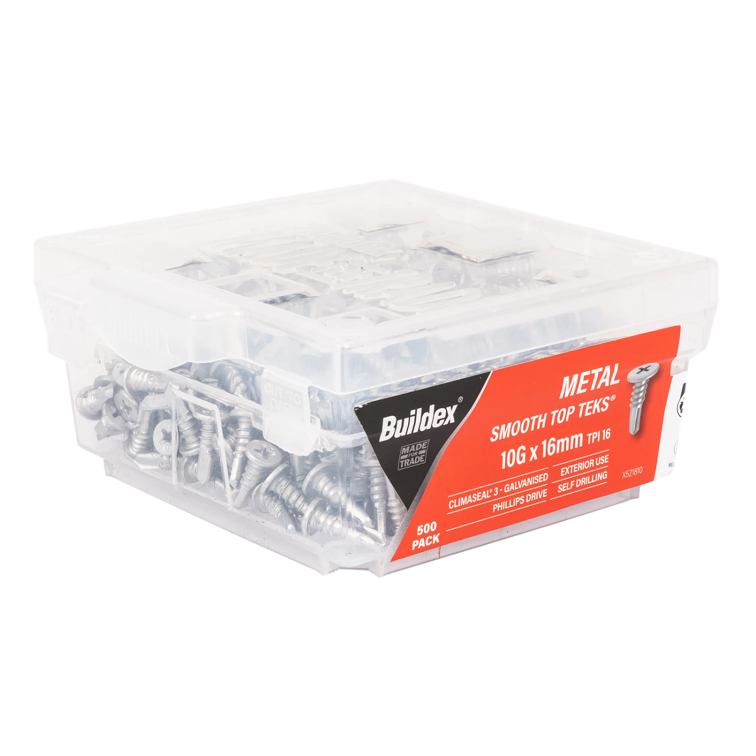 Buildex Smooth Top Teks self-drilling screws have a low profile head used in Steel Frame Housing for fixing bracing straps and internal frame assembly. The Tek drill point requires no pre-drilling or pre-punched holes.