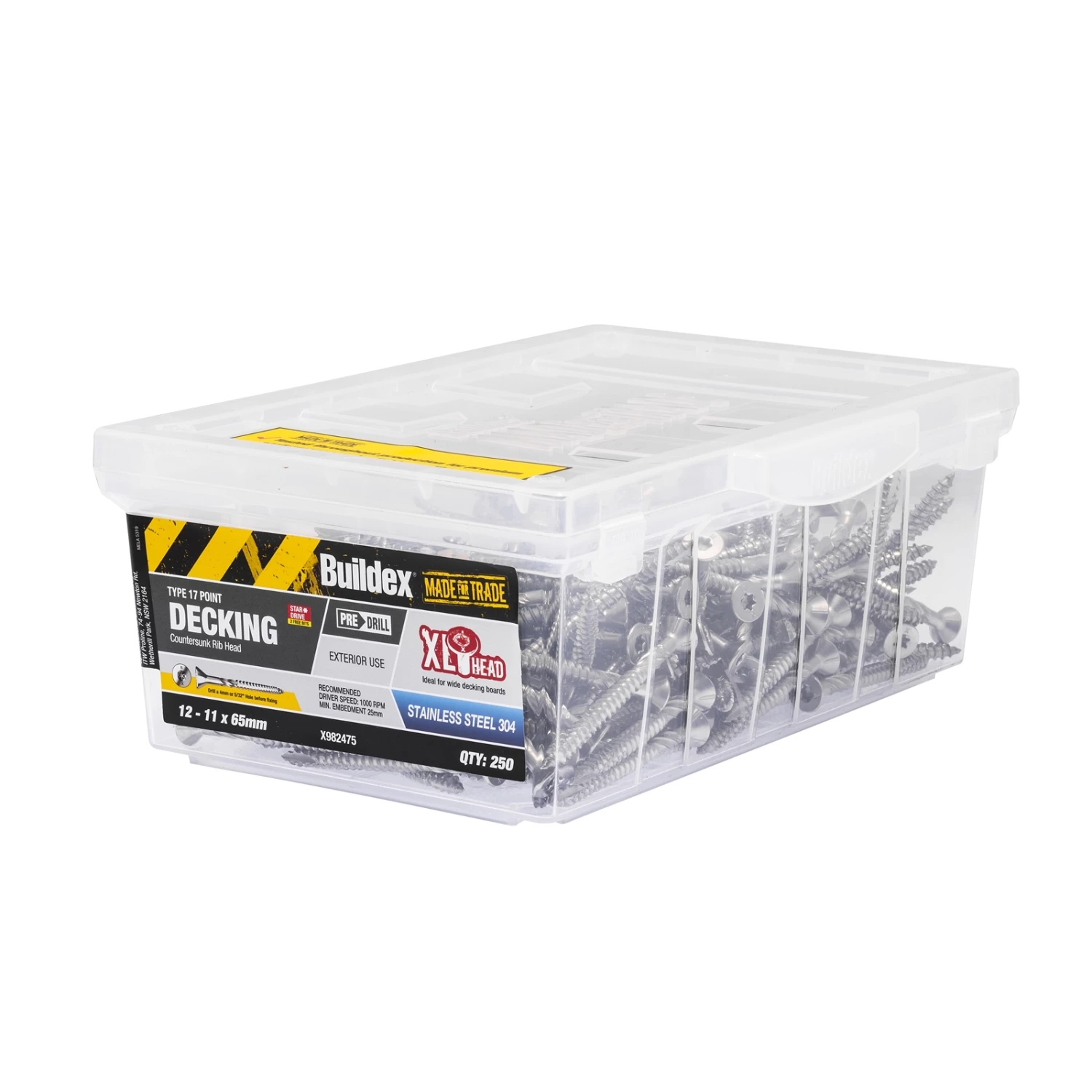 Buildex XL Head Decking Screws are specifically designed for fixing decking boards to timber floor joists for a flush finish.
