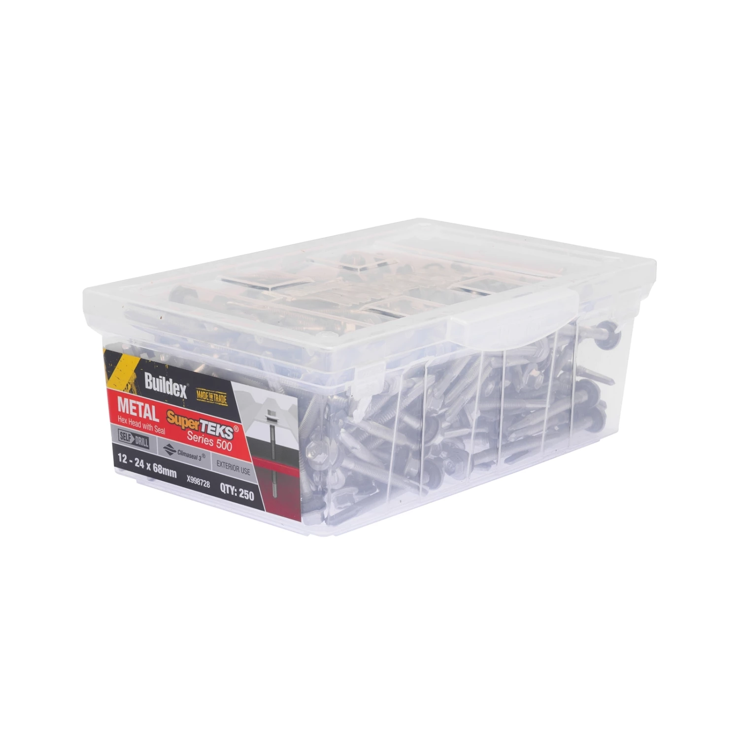 Buildex® SuperTEKS® Series 500 screws are designed for use in thick steels (hot rolled steel) from 3.0mm to 12.0mm. Applications include fixing metal to thick steel from 3mm up to 12mm hot rolled steel. Sealing washer for when a water tight finish is required: roof or wall cladding – signs, plumbing fittings.