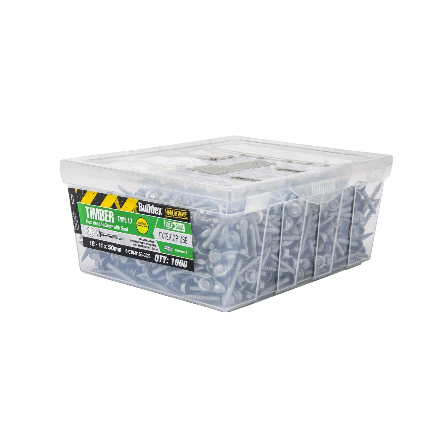 These self drilling Buildex Timber Type 17 screw with hex head and Hi-Grip seals are suitable for roofing applications.